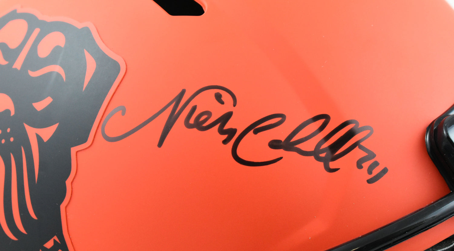 This signed helmet is more than memorabilia—it's a connection to the Cleveland Browns and a tribute to Nick Chubb’s powerhouse performances. Perfect for displaying in a collection, adding to your fan cave, or gifting to a true Browns supporter! Secure this authenticated Nick Chubb autographed helmet today.