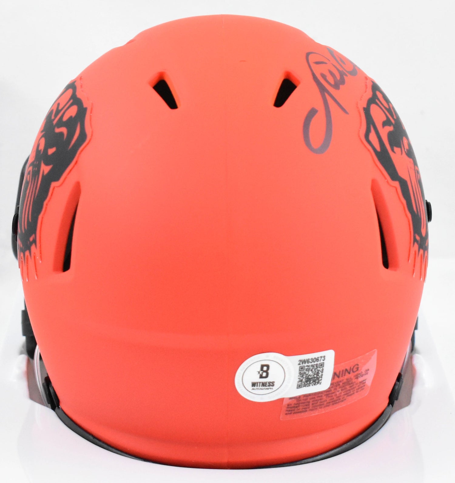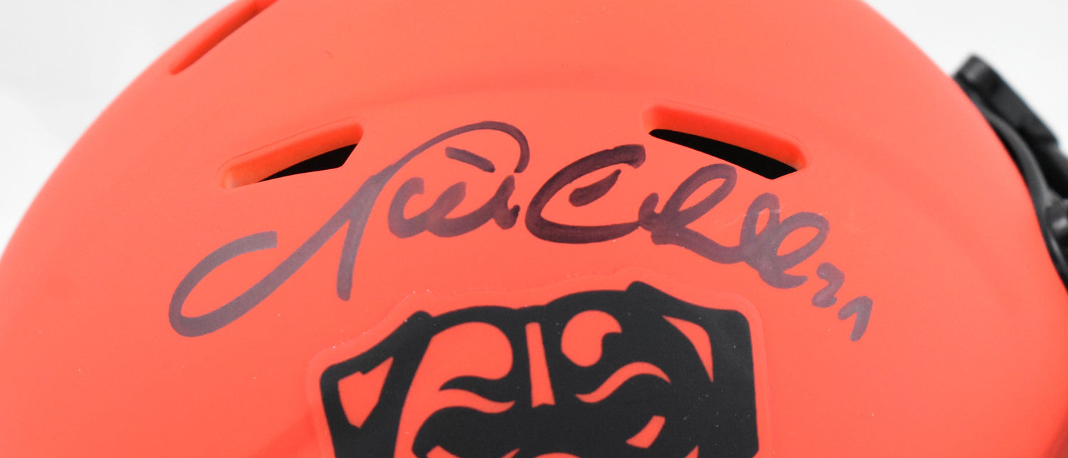 Own a piece of Cleveland Browns history with this hand-signed Nick Chubb Riddell Football Rave Speed Mini Helmet. A must-have for dedicated Browns fans and serious memorabilia collectors, this autographed mini helmet is a testament to Chubb’s dominance on the field.