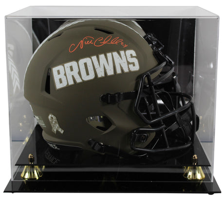 Browns Nick Chubb Signed Salute To Service Full Size Speed Rep Helmet BAS Wit