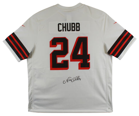 Browns Nick Chubb Authentic Signed White Nike Jersey Autographed BAS Witnessed