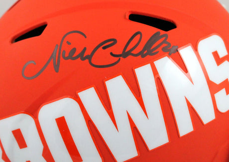Nick Chubb Autographed Cleveland Browns Flash Speed Mini Helmet-Beckett W Holo
