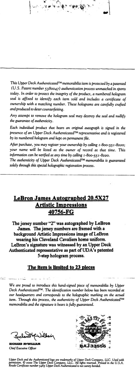 Very low stock (1 unit)$359Unit price /UnavailableLEBRON JAMES Autographed Cleveland Cavaliers "Stargazer" "28 x 24" Lithograph UDA LE 25/123