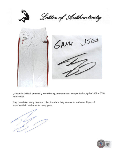 Cavaliers Shaquille O'Neal "Game Used" Signed White Adidas Warmup Pants BAS Wit