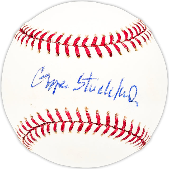 This Official MLB Baseball has been hand-signed by George Strickland, a key player known for his contributions to Major League Baseball. This piece of memorabilia is a must-have for collectors and baseball enthusiasts alike.