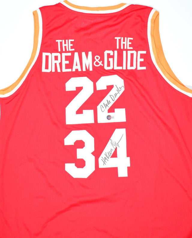 Hakeem Olajuwon Clyde Drexler Autographed Red Pro Style Jersey- Beckett W Holo