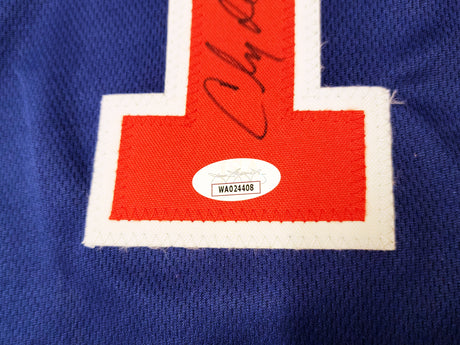 Team USA Clyde Drexler Autographed Blue Jersey The Glide JSA Stock #202348