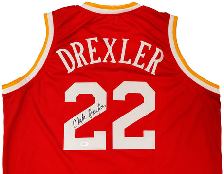 Clyde Drexler Autographed Red College Style Jersey- JSA Witnessed *Black