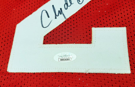 Houston Rockets Clyde Drexler Autographed Red Jersey The Glide JSA Stock #202351