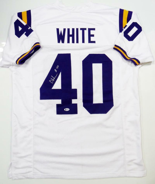 Celebrate your passion for football memorabilia with this hand-signed Devin White custom jersey—a must-have for any dedicated fan or collector. This is not an NCAA-licensed jersey and does not include official logos, tags, or emblems. Instead, it is a custom-made authentic style jersey featuring stitched letters and numbers, ensuring a high-quality display piece for your collection.
