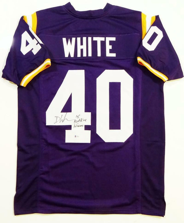 Devin White Signed Purple College Style Jersey w/2018 Butkus Winner-Beckett Auth