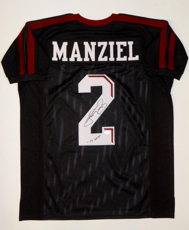 Own a piece of football history with this hand-signed Johnny Manziel custom jersey—a must-have for collectors and devoted fans alike! This authentic-style jersey features stitched letters and numbers and is a high-quality custom piece designed for display. While this is not an NCAA-licensed jersey and contains no logos, tags, or emblems, it is a stunning tribute to the legendary quarterback known for his electrifying plays.