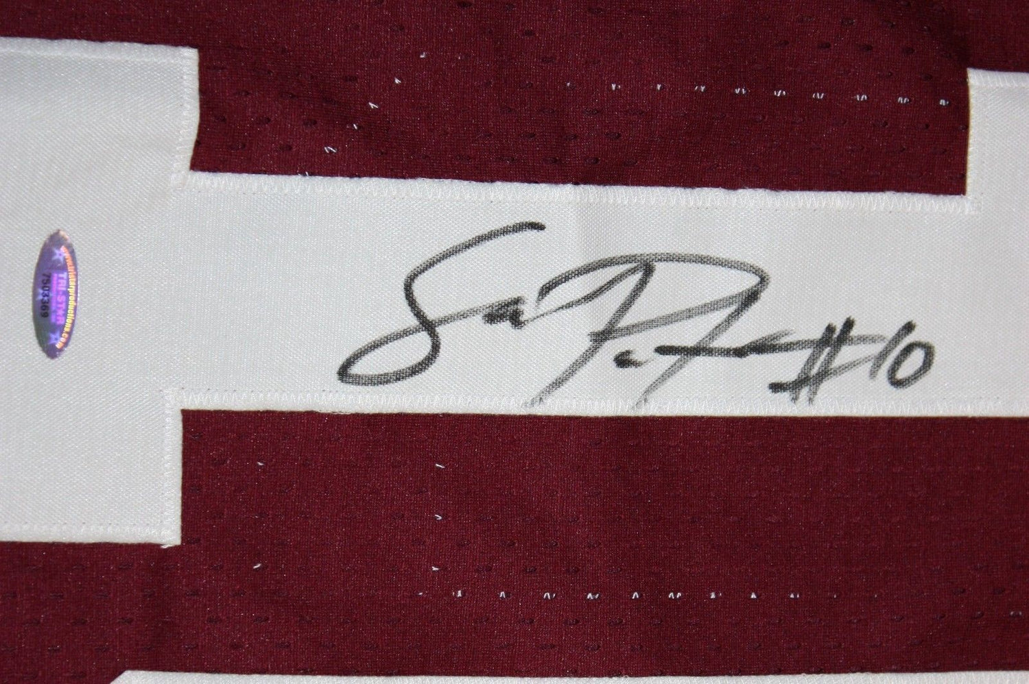 Own a piece of football history with this Sean Porter Autographed Maroon Jersey, authenticated by TriStar. A must-have for any collector or dedicated fan, this jersey is a tribute to the standout linebacker.
