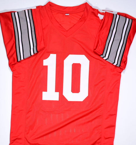 Troy Smith Autographed Red College Style Jersey- Beckett Hologram *Black