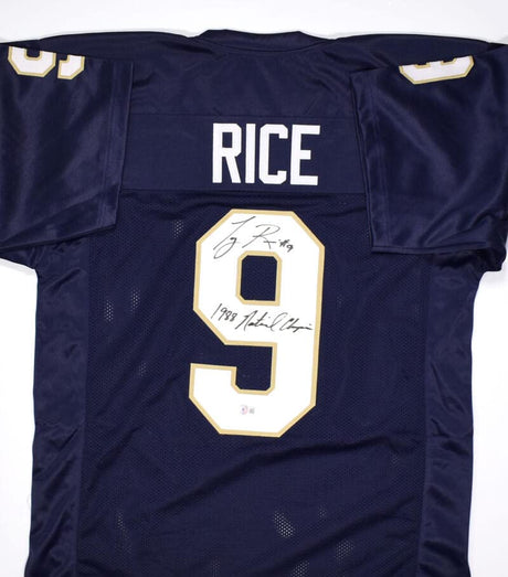 Tony Rice Autographed Navy Blue College Style Jersey w/Natl Champs- Beckett Holo