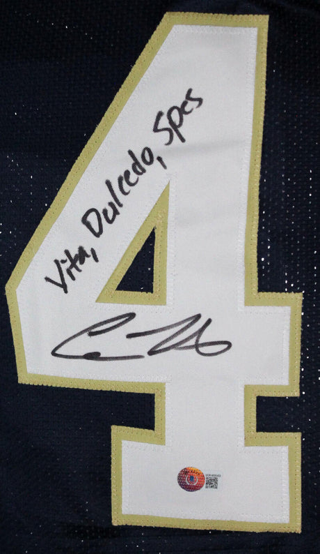 Cole Kmet Signed Blue College Style Jersey w/Vita Dulcedo Spes-Beckett W Holo