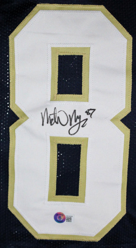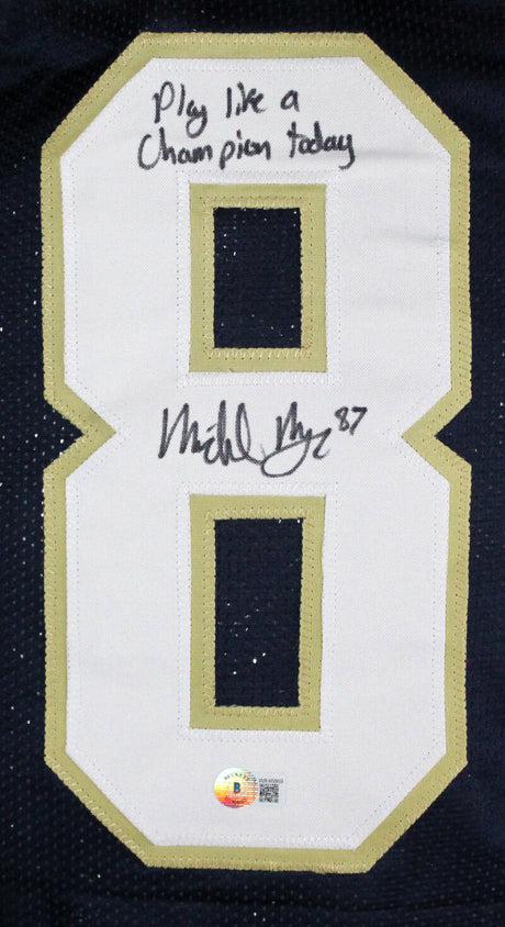Michael Mayer Signed Blue College Style Jersey w/Play Like a Champ-BeckettW Holo