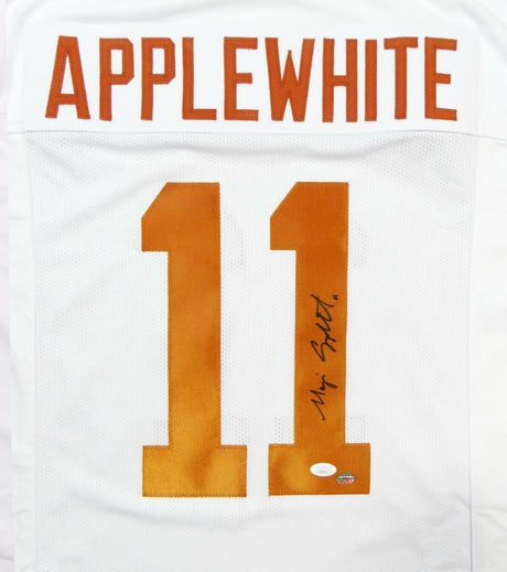 Major Applewhite Autographed White College Style Jersey- JSA Authenticated *R1