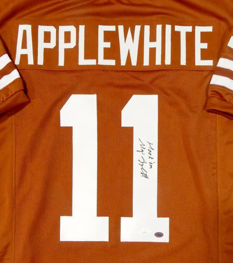 Major Applewhite Autographed Orange College Style Jersey w/ Hook Em- JSA W Auth