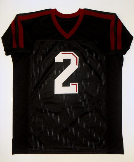 Johnny Manziel Autographed Black College Style Jersey W/ HT- JSA Witnessed Auth