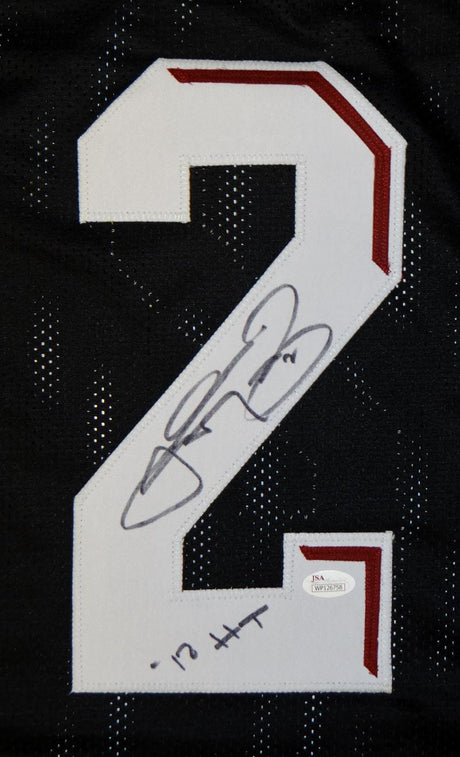 Justin Smith Autographed Black College Style Jersey- JSA Witnessed Auth