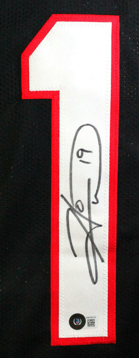 Elijah Moore Autographed Red College Style Jersey - Beckett W Hologram *Black