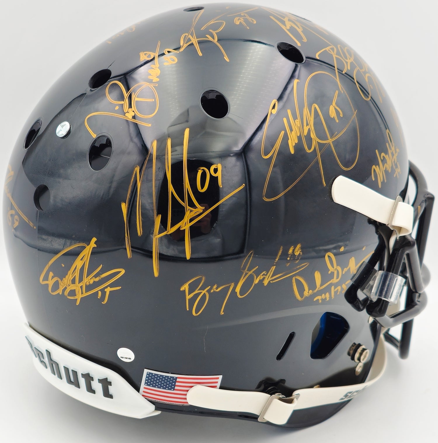 - Authentic Schutt Helmet: A full-size, black Schutt helmet crafted for display, providing a bold and dynamic look.
