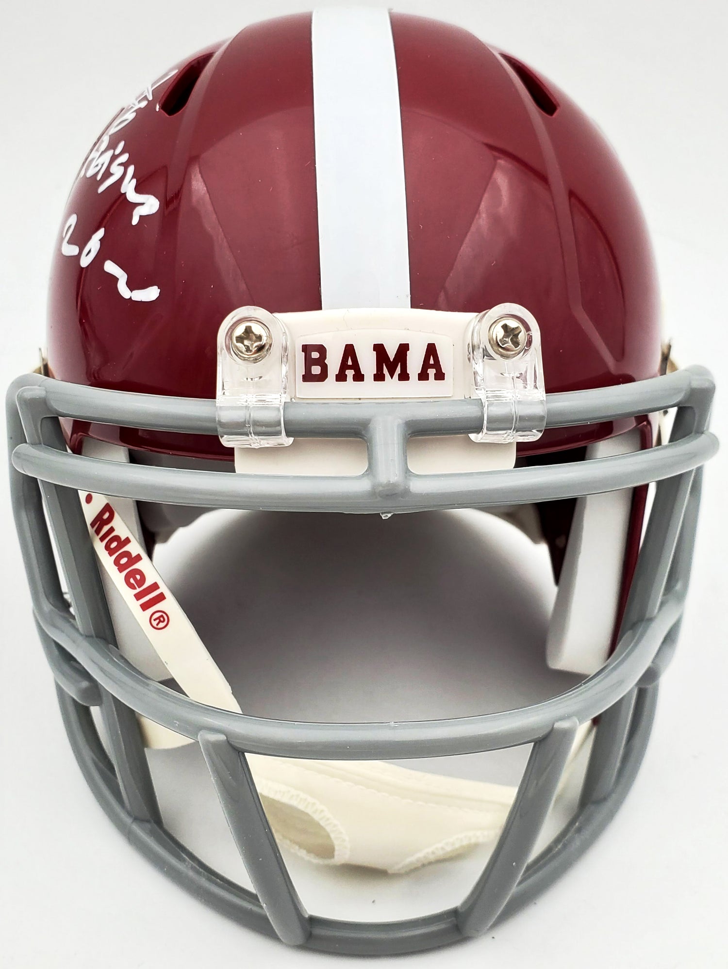 This Alabama Crimson Tide Speed Mini Helmet has been hand-signed by Devonta Smith, one of college football’s most electrifying wide receivers. Adding to its collectibility, Smith has inscribed "Heisman 2020," commemorating his historic Heisman Trophy-winning season. This exclusive piece is a must-have for Alabama fans and memorabilia collectors alike.