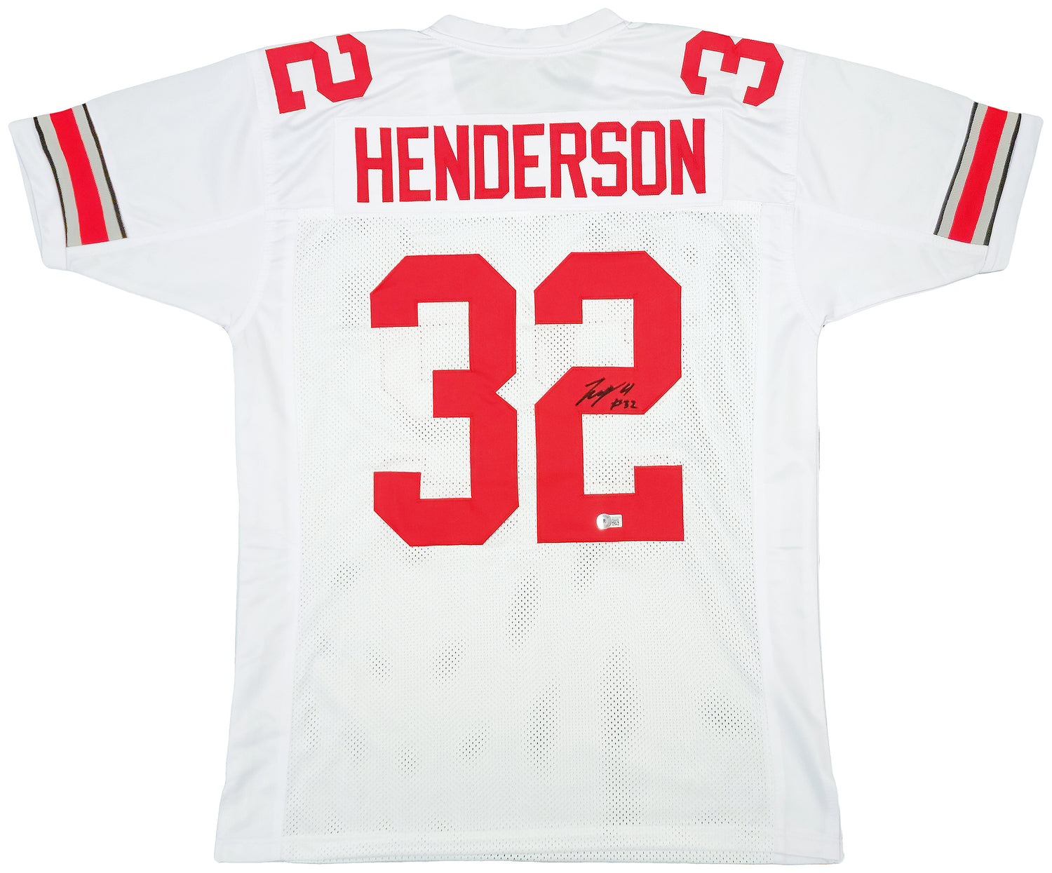 Own a piece of football history with this hand-signed TreVeyon Henderson White Jersey. Perfect for collectors and fans alike, this custom jersey is a standout addition to any memorabilia collection.