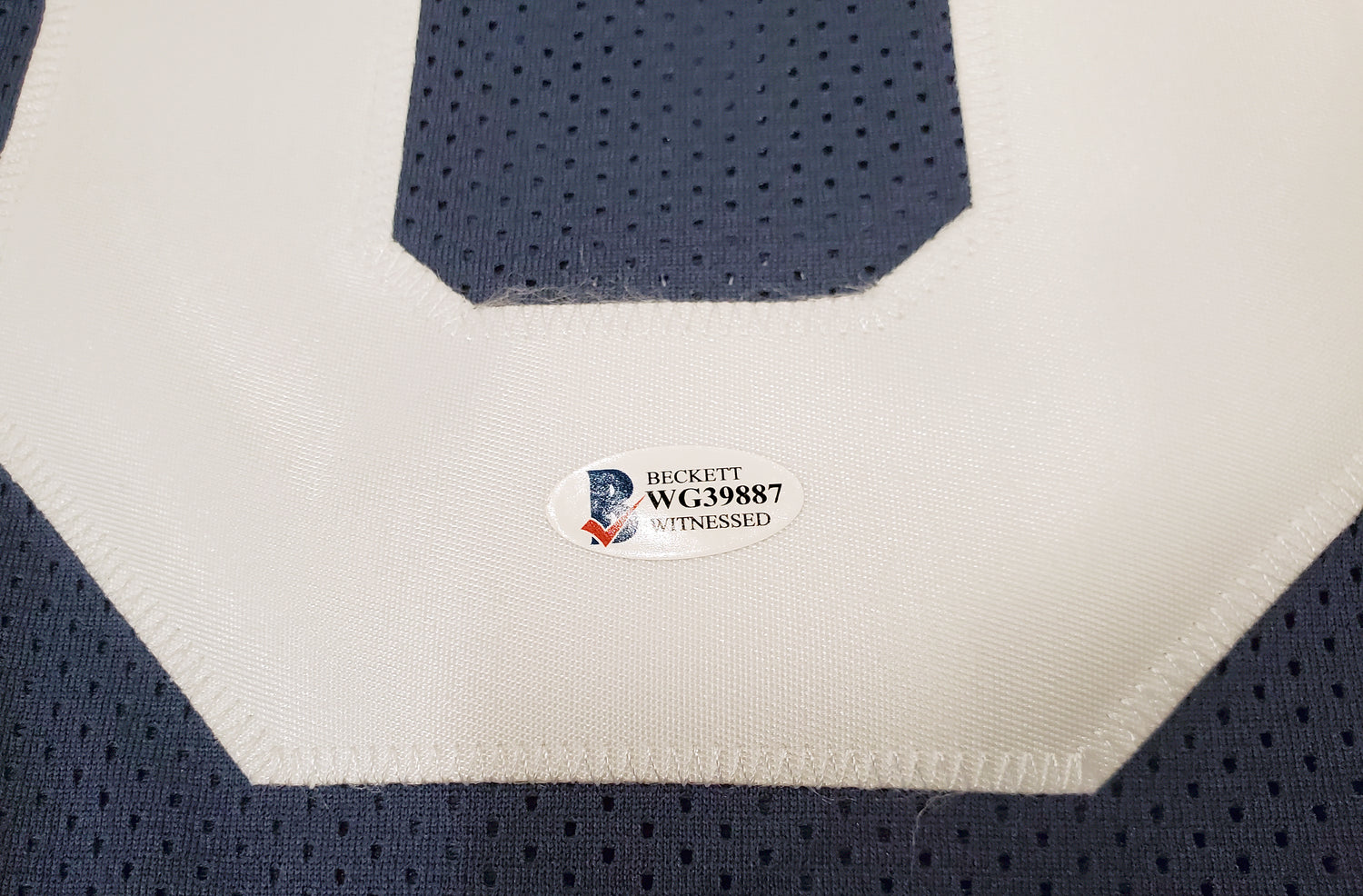 Penn State Nittany Lions Pat Freiermuth Autographed Blue Jersey Beckett BAS Stock #195774