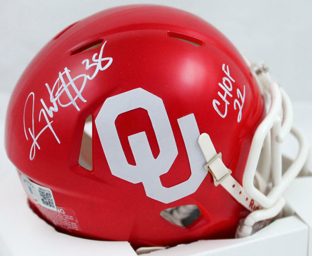 Own a piece of Oklahoma Sooners football history with this Roy Williams autographed Riddell Speed Mini Helmet. A standout safety for the Sooners, Williams was an essential part of Oklahoma’s dominant defense, earning the Bronko Nagurski Trophy and unanimous All-American honors before making his mark in the NFL. This collectible mini helmet features his hand-signed signature along with the CHOF 22 inscription, commemorating his induction into the College Football Hall of Fame in 2022.
