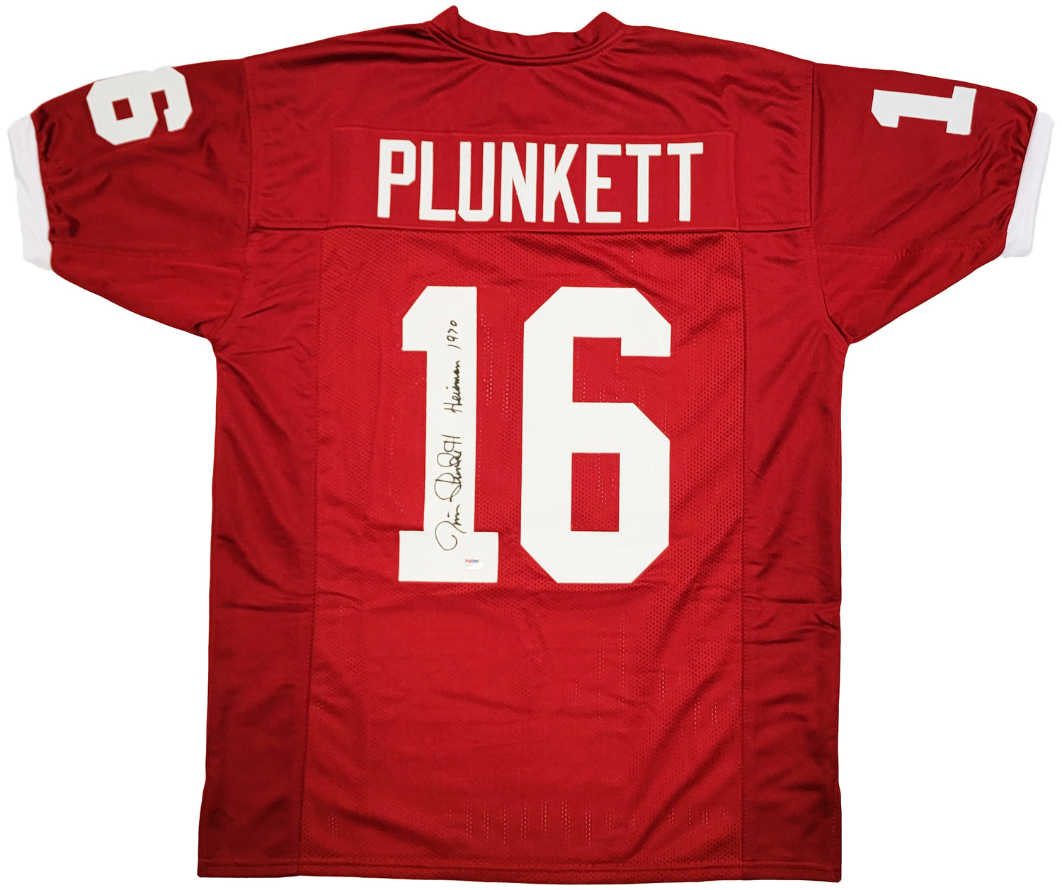 Own a piece of football history with this Jim Plunkett Signed Red Jersey, a must-have for collectors and die-hard fans. Jim Plunkett, the legendary quarterback, left an indelible mark on the game, winning the 1970 Heisman Trophy and later leading the Raiders to two Super Bowl victories. This jersey commemorates his collegiate greatness with the exclusive "Heisman 1970" inscription.