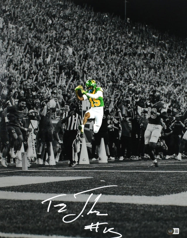 Own a piece of Oregon Ducks history with this hand-signed 16x20 photo of Tez Johnson. A must-have for collectors and die-hard Ducks fans, this autographed photo captures the talent and excitement of one of college football’s rising stars.