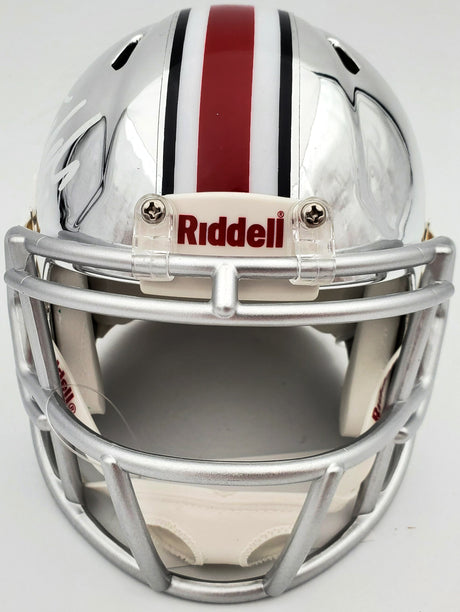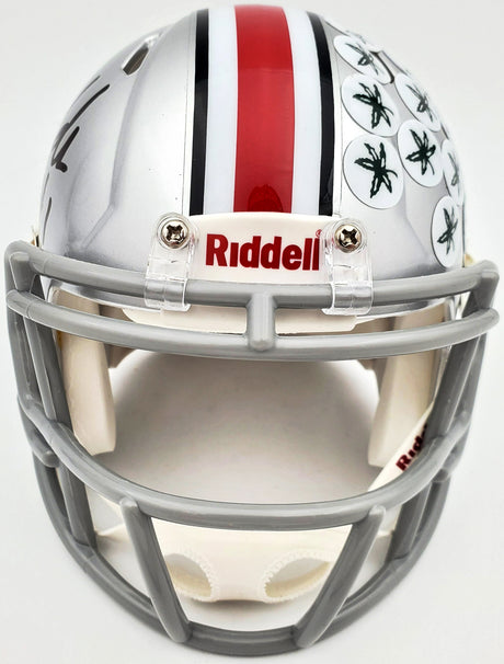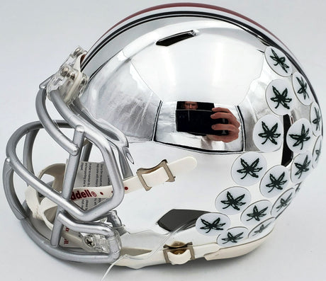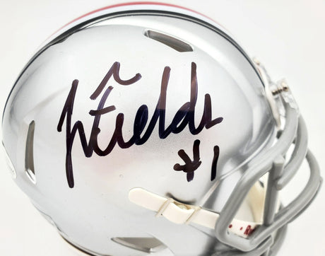 Justin Fields Autographed Ohio State Buckeyes Silver Speed Mini Helmet Beckett BAS Stock #189797