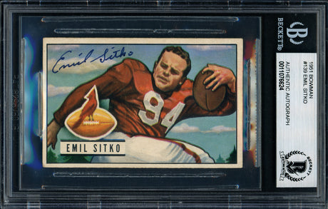 Emil Sitko Autographed 1951 Bowman Card #139 Notre Dame Fighting Irish Beckett BAS #11076624
