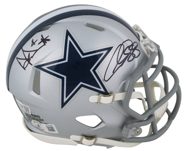 Cowboys Dak Prescott & CeeDee Lamb Signed Speed Mini Helmet BAS Witnessed