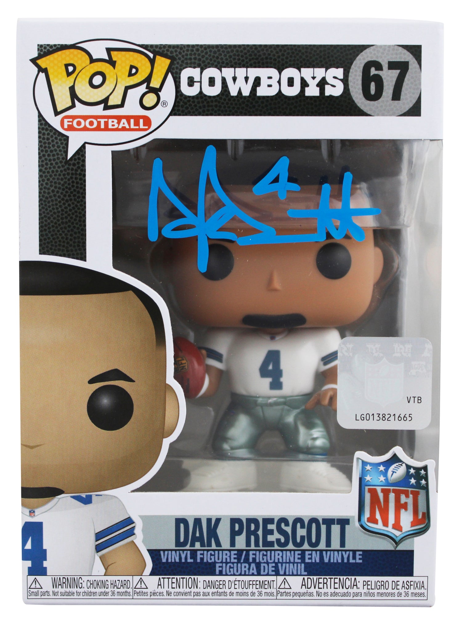 Cowboys Dak Prescott Signed #67 Funko Pop Vinyl Figure Creased BAS Wit #2W978184