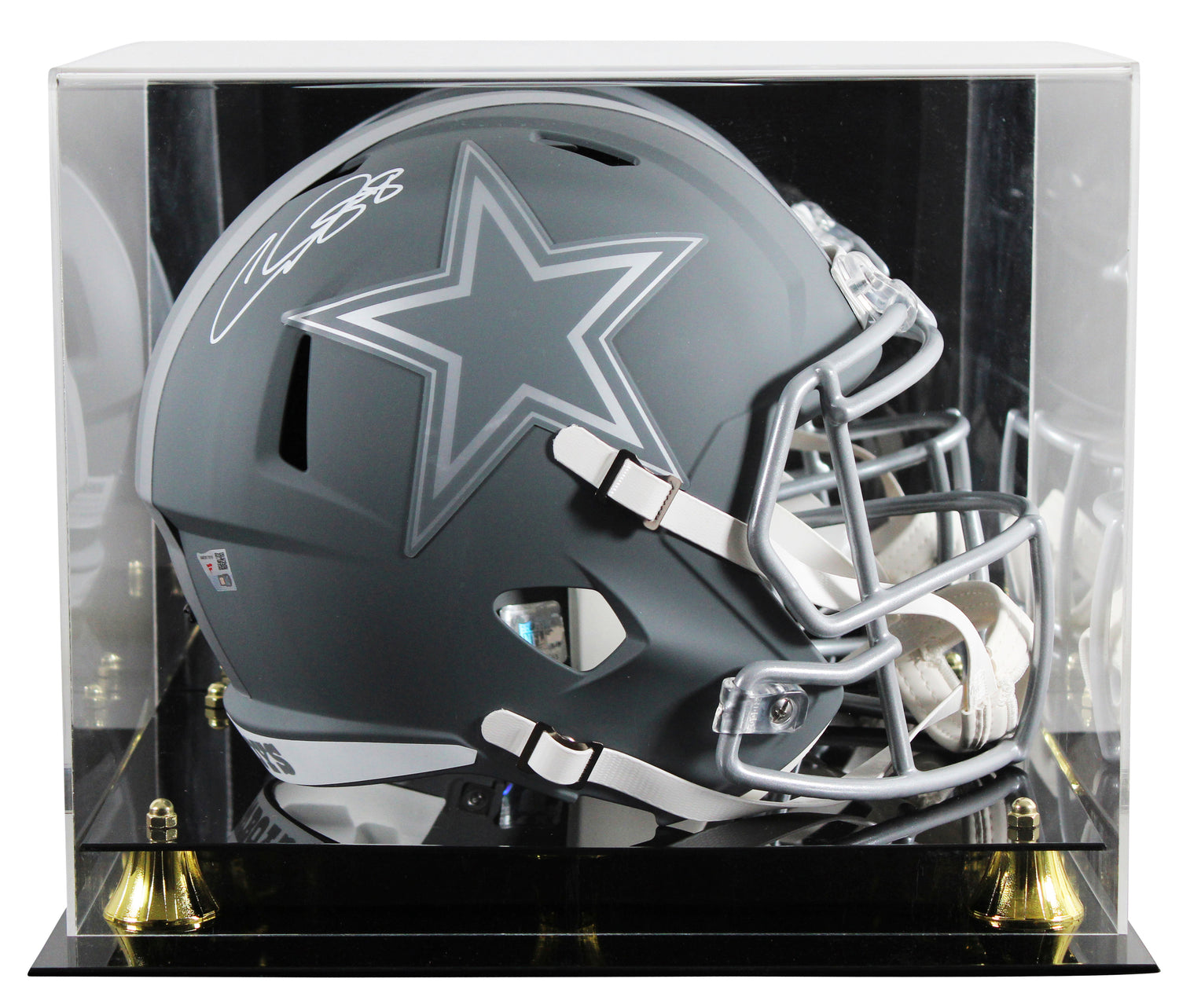 Celebrate the rising star of the Dallas Cowboys with this Autographed Alternate Slate Riddell Full Size Speed Replica Helmet with UV Mirrored Back Acrylic Display Case, personally signed by standout wide receiver CeeDee Lamb. This premium memorabilia piece is a perfect blend of style, authenticity, and collector's value—ideal for any true Dallas Cowboys fan or autograph enthusiast. CeeDee Lamb has quickly become a dominant force in the NFL, and his signature on this uniquely styled alternate slate helmet adds a bold, modern edge to your memorabilia collection.