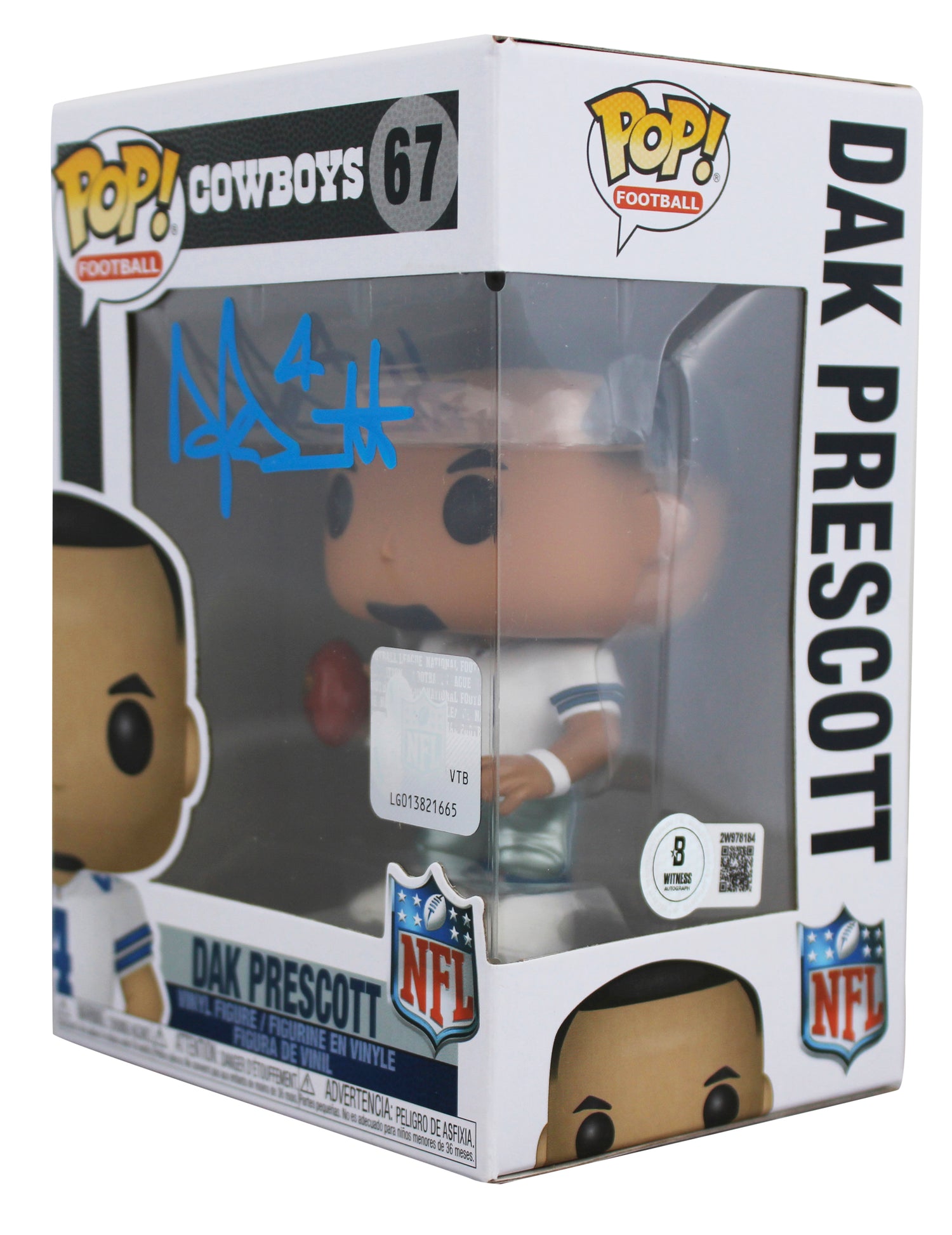 Cowboys Dak Prescott Signed #67 Funko Pop Vinyl Figure Creased BAS Wit #2W978184