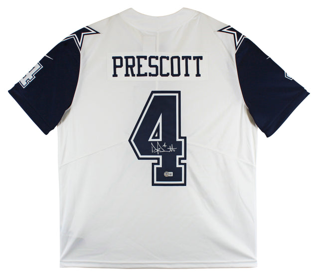 Cowboys Dak Prescott Signed White Color Rush Nike Elite Jersey BAS Witnessed