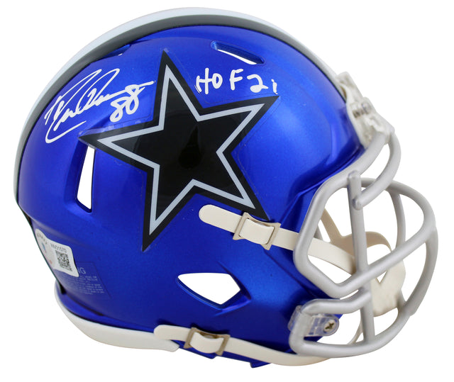 Cowboys Drew Pearson "HOF 21" Authentic Signed Flash Speed Mini Helmet BAS Wit