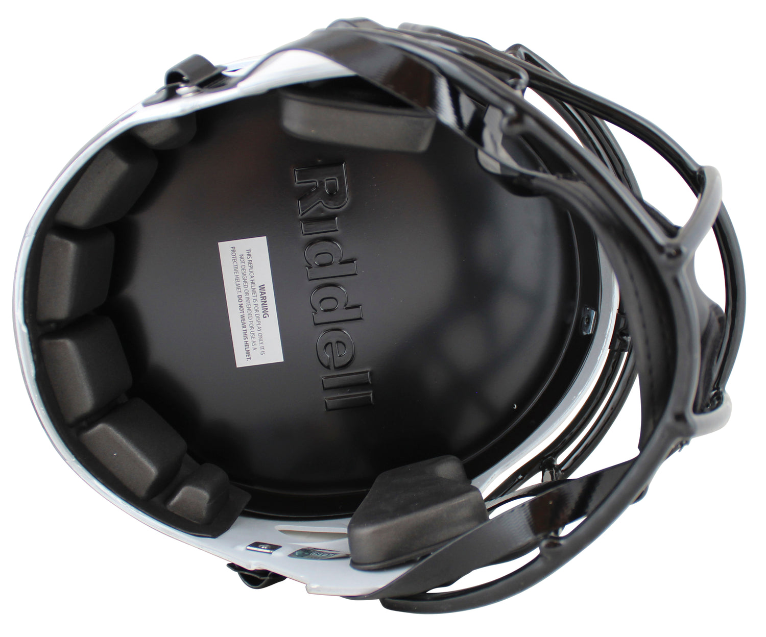 Own a piece of football history with this Emmitt Smith Autographed Alternate Lunar Riddell Full-Size Speed Replica Helmet. A must-have for Dallas Cowboys fans and memorabilia collectors, this stunning helmet is personally signed by the NFL's all-time leading rusher, making it an incredible display piece for any collection.