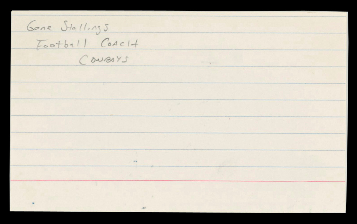 Cowboys Gene Stallings Authentic Signed 3x5 Index Card Autographed BAS #BT03577