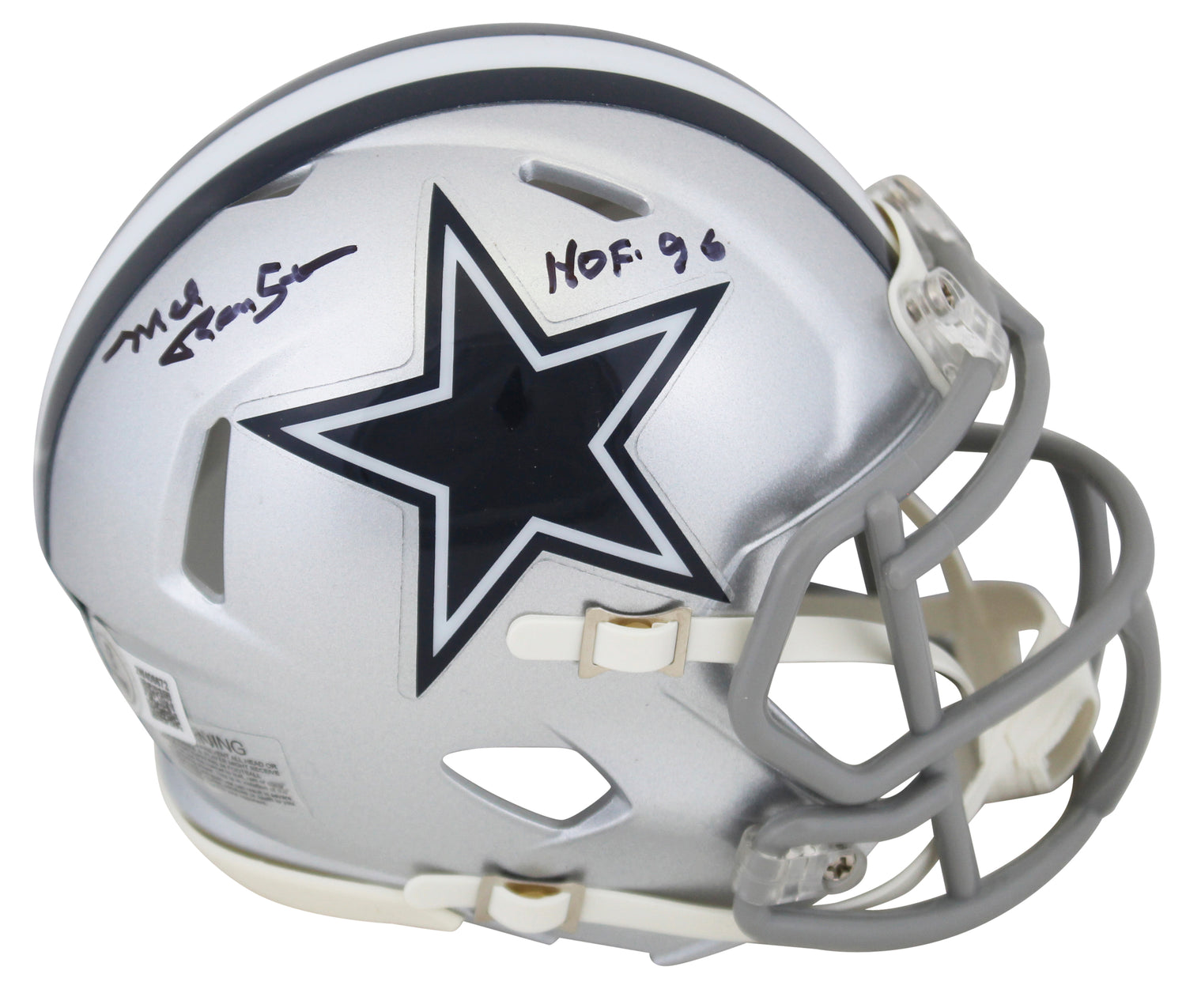 Own a piece of Dallas Cowboys history with this Mel Renfro Autographed Speed Mini Helmet, inscribed with "HOF 96" to commemorate his induction into the Pro Football Hall of Fame. A must-have for serious collectors and Cowboys fans, this mini helmet is 100% authentic, verified by Beckett Authentication Services (BAS).