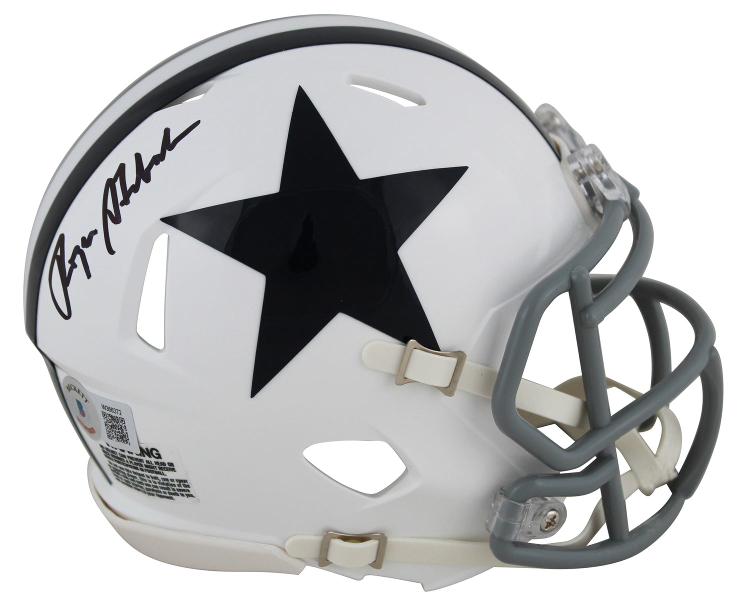 Own a piece of football history with this Roger Staubach Autographed 1960-63 Throwback Speed Mini Helmet—a must-have for dedicated Dallas Cowboys fans and serious collectors. This signed mini helmet is 100% authentic, backed by Beckett Authentication Services (BAS), ensuring its legitimacy and value. As a BAS Witnessed Protection Program item, a Beckett representative was present during the signing for extra peace of mind.