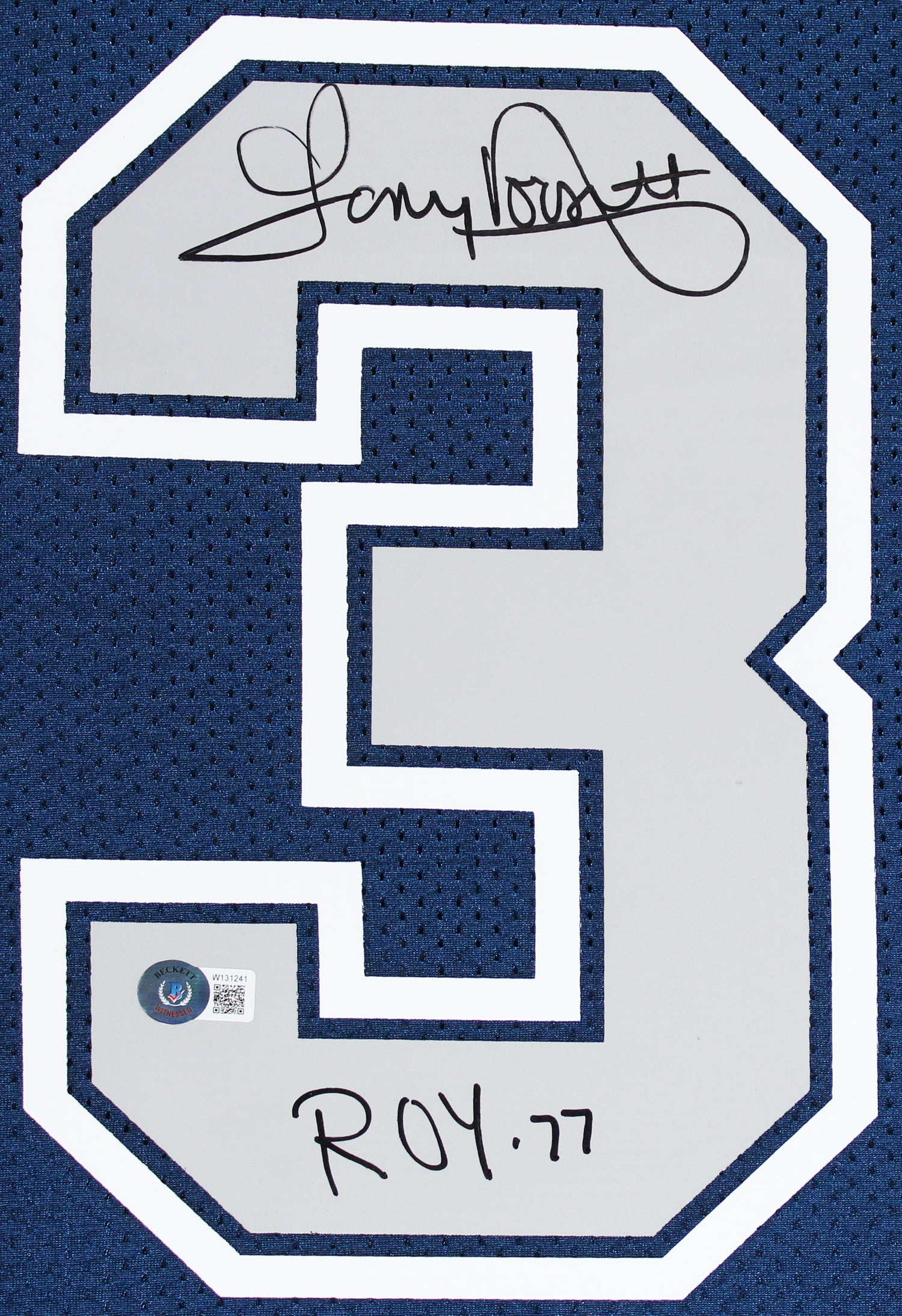 Own a piece of football history with this Tony Dorsett Autographed Navy Blue Mitchell & Ness Jersey, featuring grey numbers and the special inscriptions "HOF 94, ROY 77, America's Team." As a legendary Dallas Cowboys running back and Pro Football Hall of Famer, Dorsett’s legacy shines through this exclusive signed memorabilia.