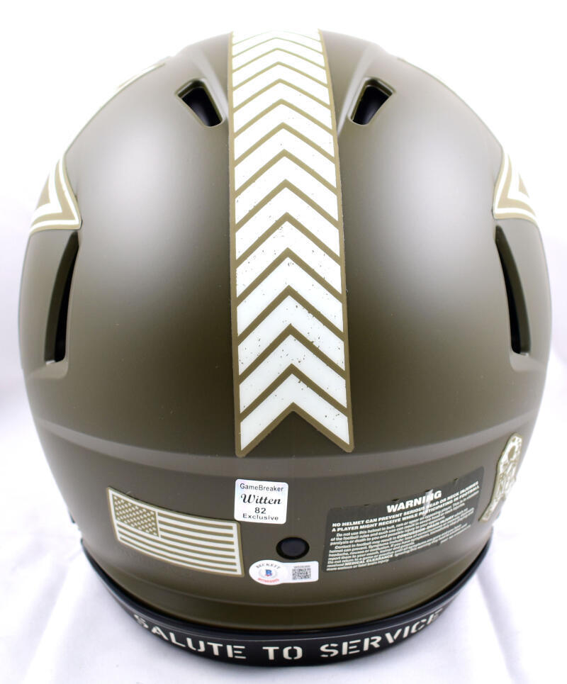 Own a piece of Dallas Cowboys history with this Jason Witten Autographed Riddell Full-Size Salute to Service Speed Authentic Helmet. A must-have for true Cowboys fans, this collectible showcases Witten's signature along with the inscription "America’s Team", honoring the legacy of one of the NFL’s most iconic franchises.