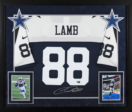 Cowboys CeeDee Lamb Signed Navy Blue Thanksgiving Nike Game Framed Jersey Fan