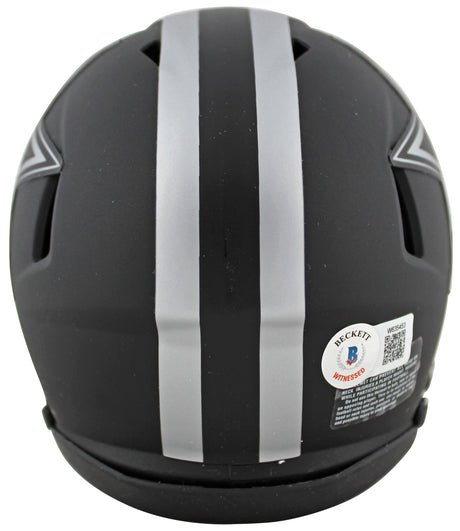 Cowboys Dak Prescott Signed Eclipse Speed Mini Helmet w/ Silver Sig BAS Witness