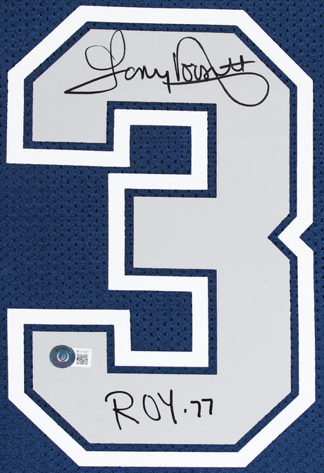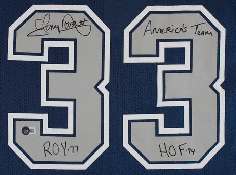 Cowboys Tony Dorsett "3x Insc" Signed Navy Blue M&N Framed Jersey w/ Grey #s BAS