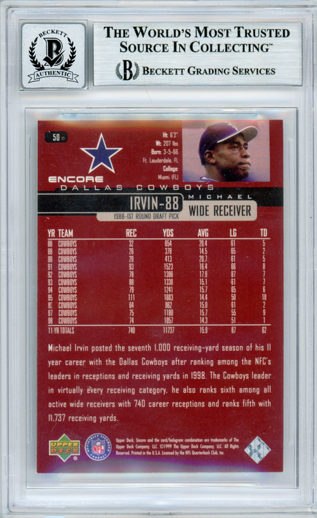 1999 Upper Deck Encore #50 Michael Irvin Dallas Cowboys BGS Autograph 10